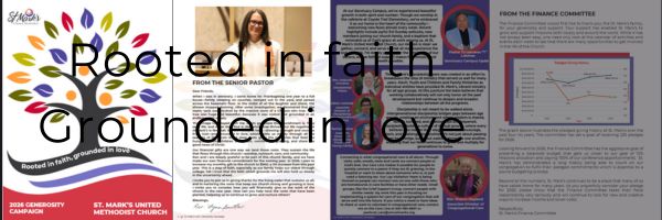 Thank you for your pledge to St. Mark's! Everything from worship, music, youth and children's ministries, missions, and the lights and air conditioning is funded through your pledge. Most of what you see week by week and year by year is the result of the giving from generations of people who have giving been of their prayers, presence, gifts, service, and witness to make St. Mark's a community that can say "We gather, connect, and serve, so all may experience the love of Christ."
